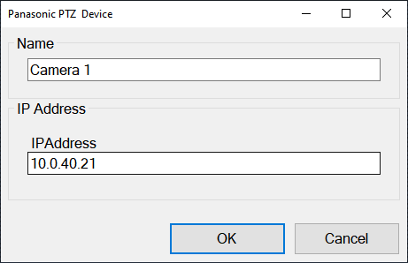 First create a Panasonic PTZ macro clip and then click the new button. Enter the information required based on your setup. If you have multiple cameras then they must be on different IP addresses and added as separate devices.